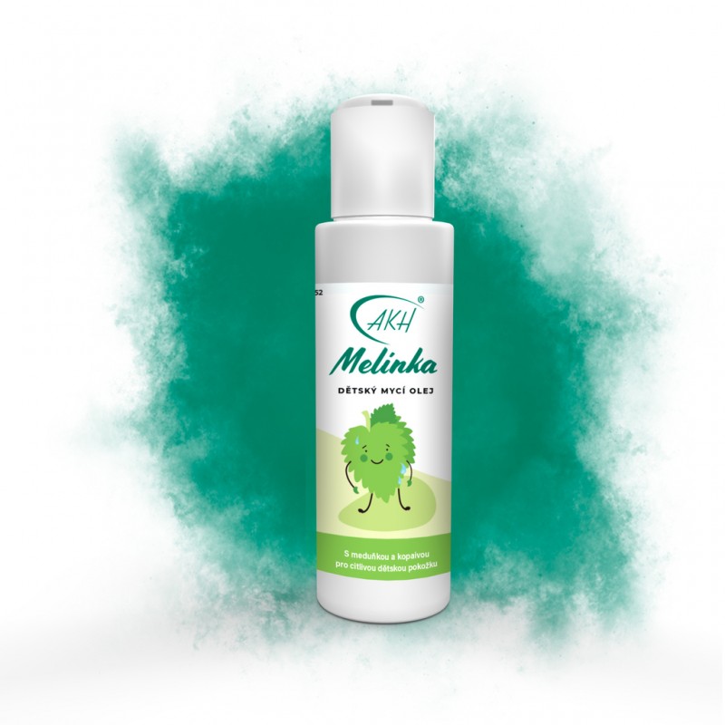 Mycí olej s meduňkou a kopaivou pro jemnou dětskou pokožku - nepěnivá alternativa mycích gelů pro děti.